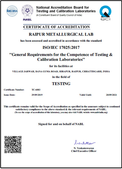 As a NABL-accredited lab, we follow stringent quality standards to ensure every test meets regulatory requirements. Choose Raipur Metallurgical Lab for testing services that you can trust!